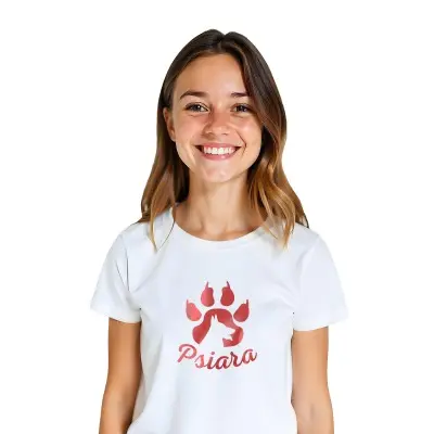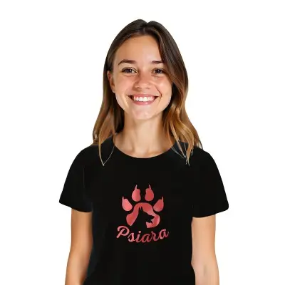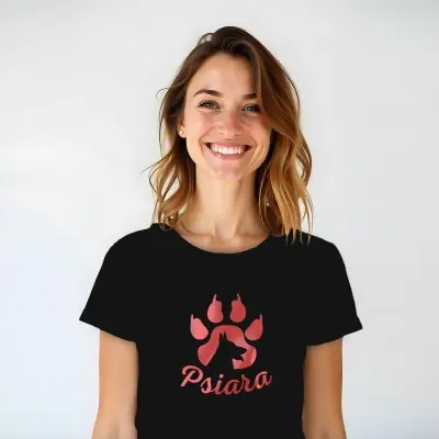 Napisz pierwszą opinię o „Koszulka z nadrukiem „PSIARA” – Dla prawdziwych miłośniczek psów!”