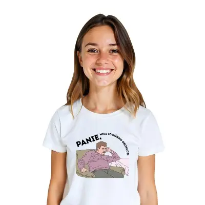 Koszulka z nadrukiem – Śmieszna grafika i napis „PANIE, MNIE TO G***O OBCHODZI”