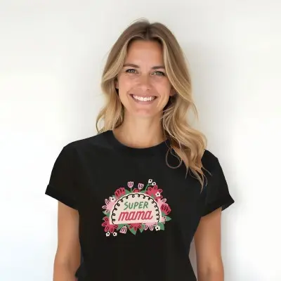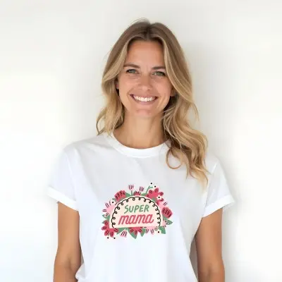Delikatna grafika kwiatów połączona z napisem „Super Mama” to idealne połączenie kobiecej elegancji i ogromnej siły, jaką codziennie pokazuje każda mama. Ta koszulka to nie tylko ubranie – to mały hołd dla tej, która potrafi być czuła, niezastąpiona i niezniszczalna jednocześnie.