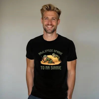 Ta koszulka to idealna opcja dla wszystkich, którzy cenią sobie prostotę życia, wiejski klimat i porządny sen bez zbędnych ceregieli. Śmieszna grafika i swojski napis rozbawi każdego, kto wie, że czasem najlepiej śpi się tam, gdzie pachnie naturą (i trochę kotem z podwórka).