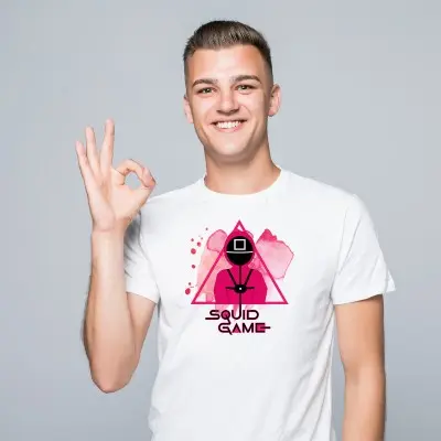 Szukasz koszulki, która przyciąga wzrok i wywołuje uśmiech? Jeśli uwielbiasz klimat Squid Game, ten t-shirt jest dla Ciebie!