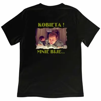 Kultowy tekst, który zna każdy fan klasycznej polskiej komedii! Koszulka „Kobieta Mnie Bije” z legendarnym cytatem z „Seksmisji” to idealny wybór dla każdego, kto ceni sobie dobry humor i dystans do życia. Świetna jako prezent na urodziny, wieczór kawalerski, grilla czy po prostu na poprawę nastroju.