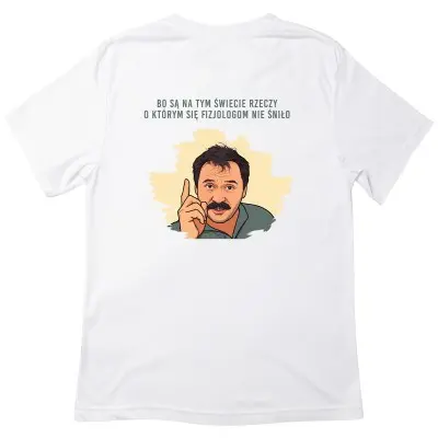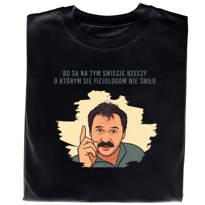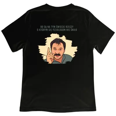 Koszulka z legendarnym cytatem Ferdynanda Kiepskiego: „Bo są na tym świecie rzeczy, o których się filozofom nie śniło” to idealny wybór dla każdego fana kultowej polskiej komedii i życiowego dystansu. Ten nieśmiertelny tekst z „Świata według Kiepskich” zawsze wywołuje uśmiech i przypomina, że życie potrafi zaskakiwać bardziej niż jakakolwiek teoria!