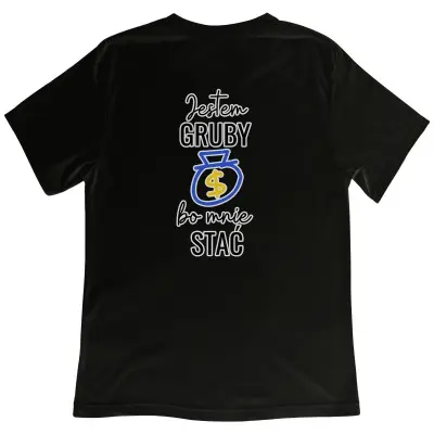 Szukasz prezentu, który wywoła śmiech od pierwszego spojrzenia? Koszulka z napisem „Jestem Gruby Bo Mnie Stać” to idealna propozycja dla osób z poczuciem humoru i dużym dystansem do siebie! Ten śmieszny t-shirt to modny sposób na pokazanie luzu i autoironii – idealny na prezent lub po prostu do codziennego noszenia.