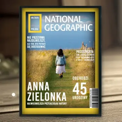 Zaskocz bliską osobę wyjątkowym prezentem! Personalizowany plakat w stylu okładki National Geographic z Twoim zdjęciem to niebanalna pamiątka, która przyciąga wzrok i robi ogromne wrażenie. Idealny prezent dla mężczyzny lub kobiety, który sprawdzi się na urodziny, rocznicę, Dzień Chłopaka, Dzień Kobiet, Walentynki czy każdą inną okazję.