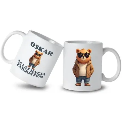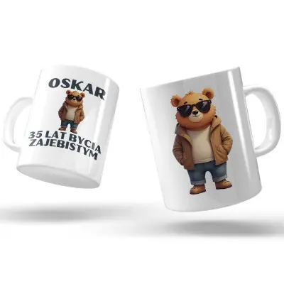 Ten personalizowany kubek z misiem i napisem „Oskar – 35 lat bycia zajebistym” to idealny wybór dla solenizanta z dystansem do siebie i poczuciem humoru!
