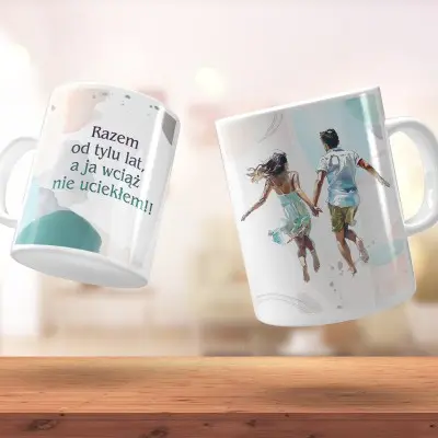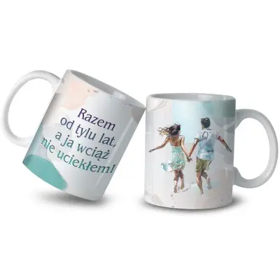 Kubek z napisem „Razem od tylu lat, a ja wciąż nie uciekłem” to idealny wybór na rocznicę, walentynki lub po prostu jako żartobliwy upominek dla męża, żony, chłopaka czy dziewczyny. To prezent z przymrużeniem oka – idealny dla par, które łączy nie tylko miłość, ale też wspólne poczucie humoru