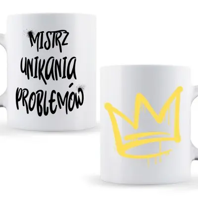 Podaruj mu ten kubek z napisem „Mistrz unikania problemów” – bo każda zasługa zasługuje na wyróżnienie!