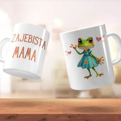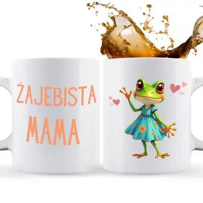 Szukasz nietypowego prezentu z humorem? Kubek z napisem „Żajebista żaba” i grafiką uroczego płaza to strzał w dziesiątkę dla każdego, kto uwielbia śmieszne hasła, żaby lub… po prostu jest żajebisty(a)!