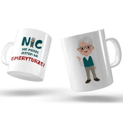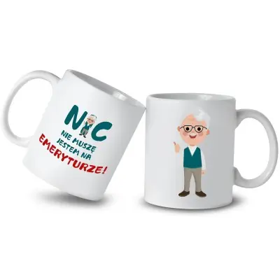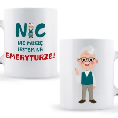 Kubek z napisem „Nic nie muszę, jestem na emeryturze” to idealny prezent dla każdego seniora, który ceni luz, spokój i odpoczynek bez żadnych zobowiązań.