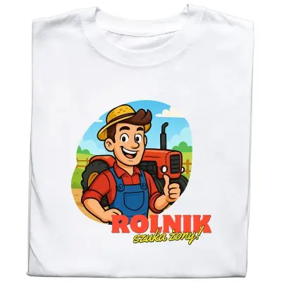 Dodaj odrobiny humoru do swojej garderoby dzięki koszulce inspirowanej kultowym programem Rolnik Szuka Żony! Wyjątkowy nadruk sprawi, że nie tylko poprawisz sobie nastrój, ale i wywołasz uśmiech u każdego, kto Cię zobaczy.