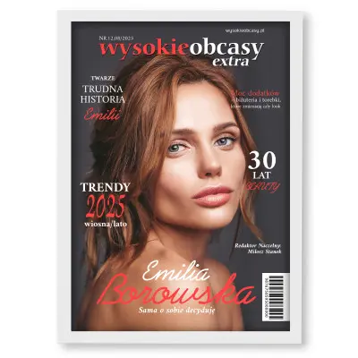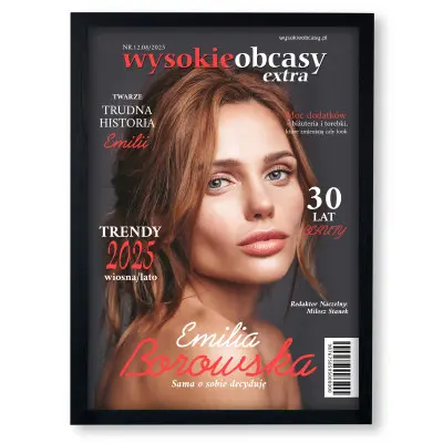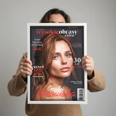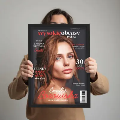 Podaruj bliskiej osobie personalizowaną okładkę magazynu WYSOKIE OBCASY – stylowy, zabawny i elegancki upominek, który wywoła efekt „wow”. Twoje zdjęcie, indywidualne napisy i nowoczesny design stworzą niepowtarzalną pamiątkę w formacie A3.