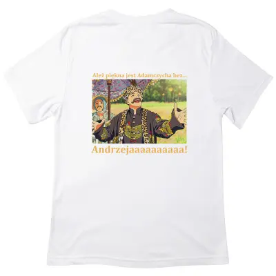 Ta koszulka z nadrukiem „Ależ piękna jest Adamczycha bez Andrzeja” to obowiązkowa pozycja dla fanów serialu 1670! Humorystyczny cytat, świetna jakość nadruku i wygodny krój sprawiają, że to idealny wybór na co dzień lub śmieszny prezent dla fana polskiego humoru historycznego. Pokaż, że znasz najlepsze teksty z 1670 i noś swoją pasję z dumą!