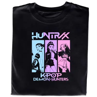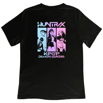 Poczuj moc i energię K-popu w niepowtarzalnym stylu!  Ta koszulka z nadrukiem K-popowe Łowczynie Demonów Huntrix to idealny wybór dla osób, które kochają połączenie muzyki, fantasy i wyjątkowego designu. Wykonana z wysokiej jakości bawełny, zapewnia komfort noszenia i trwałość nadruku. Doskonale sprawdzi się na koncertach, eventach lub jako prezent dla fana K-popu