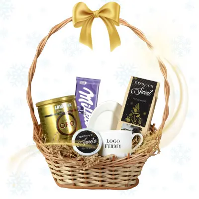 • Opakowanie – elegancki kosz prezentowy z możliwością dodania logo lub bileciku świątecznego.