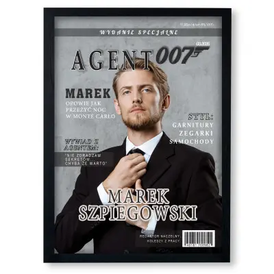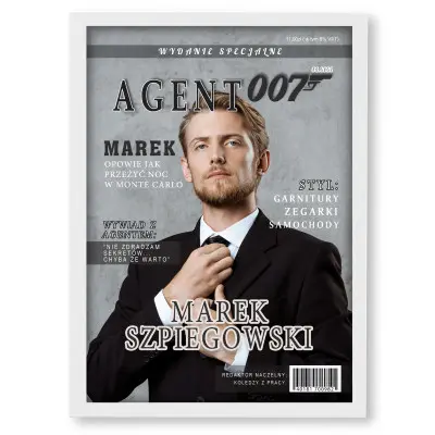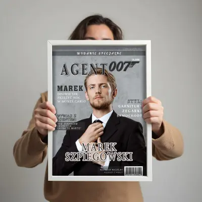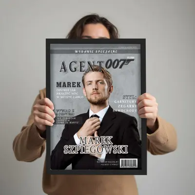 Poczuj się jak prawdziwy bohater filmów akcji! Personalizowana okładka magazynu „Agent 007” to wyjątkowy prezent dla miłośnika kina, elegancji i przygody. Dodaj zdjęcie obdarowanej osoby, jej imię i nazwisko oraz podpis od kogo, a my stworzymy stylowy plakat w klimacie Jamesa Bonda – pełen klasy i tajemniczego uroku.