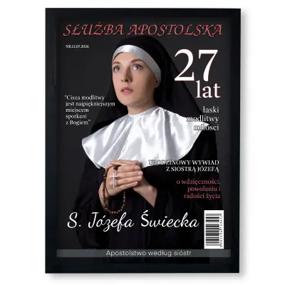 Podaruj wyjątkowy, osobisty prezent w duchowym i inspirującym klimacie. Personalizowany plakat „Służba Apostolska” to elegancki upominek dla osób związanych z parafią, misją duszpasterską lub działających w kościele. Wystarczy dodać zdjęcie, imię i nazwisko oraz podpis od kogo, a my stworzymy plakat stylizowany na okładkę magazynu „Służba Apostolska” – stonowany, elegancki i pełen symboliki.