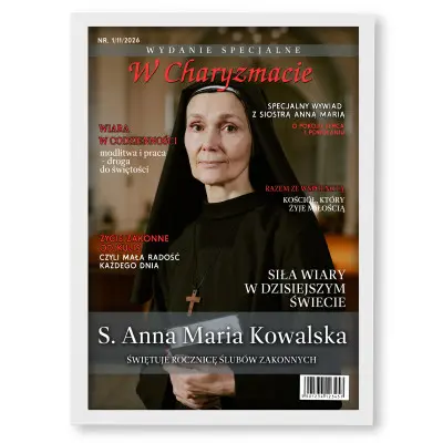 Podaruj pamiątkę pełną wiary i inspiracji. Personalizowany plakat „W Charyzmacie” ze zdjęciem to elegancki i symboliczny prezent dla osób zaangażowanych w wspólnoty, posługę modlitewną lub działalność duchową. Wystarczy przesłać zdjęcie, imię, nazwisko oraz dedykację, a my stworzymy plakat stylizowany na okładkę magazynu o duchowym przesłaniu – pełen ciepła, światła i wewnętrznej mocy.