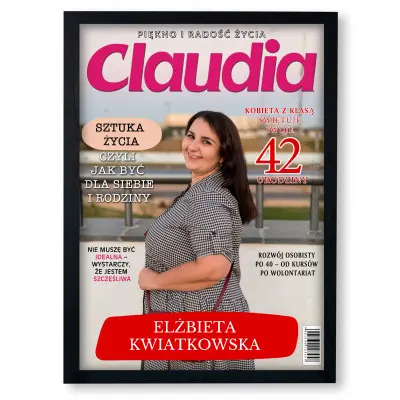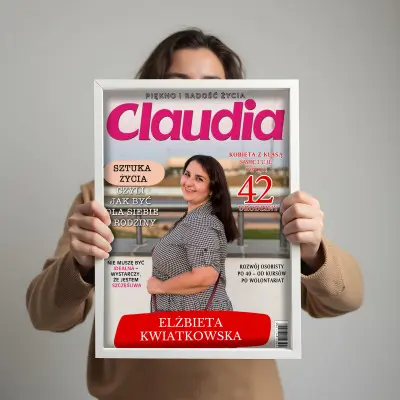 Poczuj się jak gwiazda okładki! Personalizowany plakat „Claudia” ze zdjęciem to elegancki i modny prezent dla każdej kobiety, która kocha styl, urodę i dobre historie. Wystarczy przesłać zdjęcie, imię, nazwisko oraz krótką dedykację, a my stworzymy plakat stylizowany na profesjonalną okładkę magazynu „Claudia” – subtelny, kobiecy i pełen klasy.