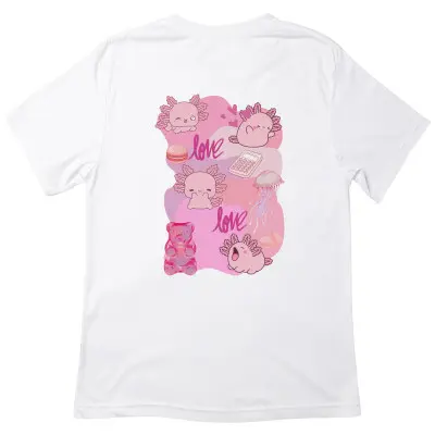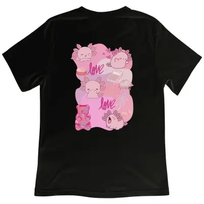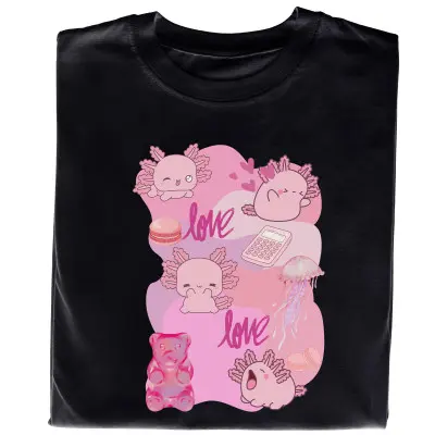 Pokaż swoją miłość do jednego z najsłodszych zwierząt świata! Ta koszulka z nadrukiem miłośnika axolotl to doskonały wybór dla fanów aksolotli, kawaii estetyki i uroczych grafik. Słodki, przyciągający uwagę nadruk w stylu cute sprawia, że koszulka jest idealna do codziennych stylizacji, spotkań ze znajomymi, czy jako element kolekcji fanów zwierząt.
