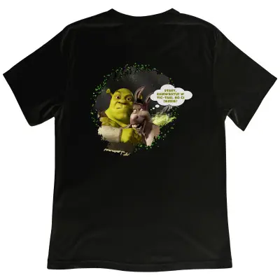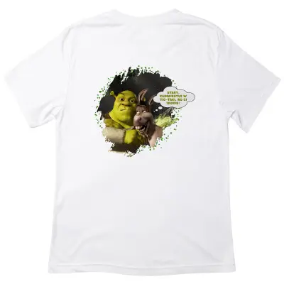 Koszulka wykonana jest z wysokiej jakości bawełny, co zapewnia komfort i trwałość nadruku. Doskonała na co dzień, spotkania ze znajomymi, imprezy lub jako prezent dla fana Shreka i humorystycznych memów.