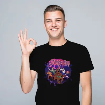 Rozwiąż zagadki i pokaż swoją miłość do kultowej kreskówki z tą wyjątkową koszulką z nadrukiem Scooby-Doo! Grafika przedstawia ulubione postacie – Kudłatego, Daphne, Freda i Velmę – w klasycznym, kolorowym stylu bajki cartoon. Koszulka wykonana jest z wysokiej jakości bawełny, co zapewnia komfort noszenia i trwałość nadruku. Idealna na co dzień, spotkania ze znajomymi, seanse bajkowe lub jako prezent dla fana Scooby-Doo w każdym wieku.