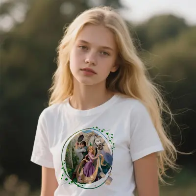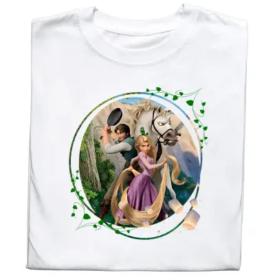 Wejdź do magicznego świata Disneya dzięki tej wyjątkowej koszulce z nadrukiem Zaplątani – Roszpunka! Grafika przedstawia główną bohaterkę bajki w kolorowym, bajkowym stylu, idealnym dla fanów animacji i klasycznych opowieści Disneya.