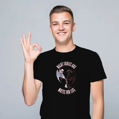 Koszulka z nadrukiem Night Furies Are Mates For Life – idealna dla fana Jak Wytresować Smoka. Świetny prezent dla miłośników Szczerbatka i smoków! Pokaż swoją miłość do świata Berk dzięki wyjątkowej koszulce z nadrukiem Jak Wytresować Smoka – Night Furies Are Mates For Life!  Subtelna, klimatyczna grafika inspirowana Szczerbatkiem i Furiami Nocnymi zachwyci każdego fana filmu i magicznych smoków.