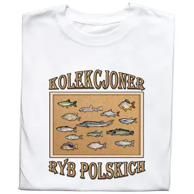 Pokaż swoją pasję do polskich łowisk dzięki tej wyjątkowej koszulce z nadrukiem Kolekcjoner Ryb Polskich!