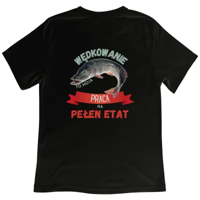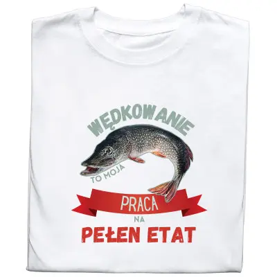 Koszulka z nadrukiem Szczupak – Wędkarstwo to moja praca na pełen etat. Idealna dla pasjonatów ryb i hobby wędkarskiego!