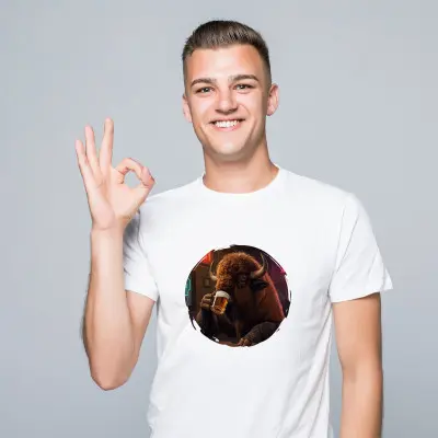 Wyraź swoje poczucie humoru dzięki tej oryginalnej koszulce z nadrukiem Żubr Pijący Żubra! To połączenie kultowego mema i lekkiego żartu, które przyciąga uwagę i wywołuje uśmiech na każdej imprezie, w pracy czy podczas spotkań ze znajomymi.