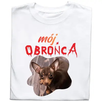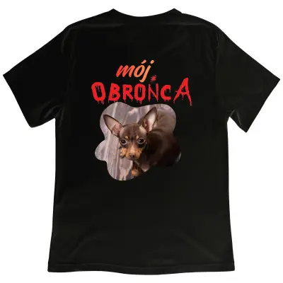 Pokaż miłość do swojego pupila dzięki tej wyjątkowej koszulce z nadrukiem Twojego psa – „Mój Obrońca”!  Nadruk można spersonalizować własnym zdjęciem psa, tworząc unikalny produkt pełen emocji i humoru. Koszulka wykonana jest z wysokiej jakości bawełny, co zapewnia komfort noszenia i trwałość nadruku. Doskonała na co dzień, spacery z psem, spotkania ze znajomymi lub jako personalizowany prezent dla miłośników psów.