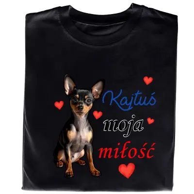 Personalizowana koszulka z nadrukiem zdjęcia Twojego psa oraz napisem „Moja Miłość” to wyjątkowy sposób na wyrażenie więzi ze swoim pupilem. Każda koszulka tworzona jest indywidualnie na podstawie przesłanego zdjęcia, dzięki czemu zyskujesz unikalny produkt o osobistym charakterze.