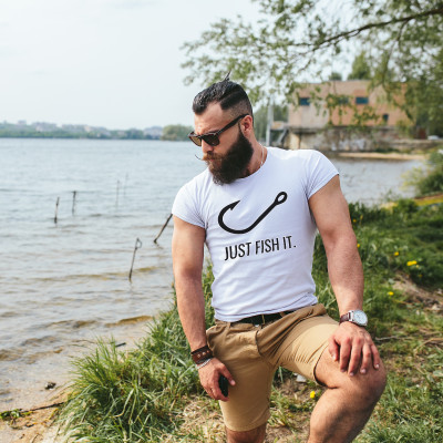 Koszulka z nadrukiem „Just Fish It” – śmieszny prezent dla wędkarza