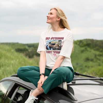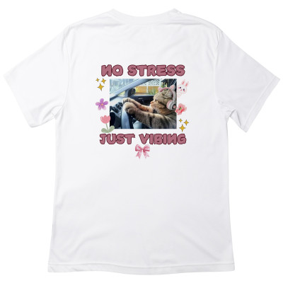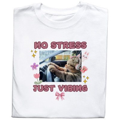 Koszulka z nadrukiem „Kot – No Stress, Just Vibing” – śmieszny prezent
