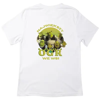 Koszulka z zabawnym nadrukiem inspirowanym Shrek to idealny wybór dla fanów memów i humorystycznych motywów. Wygodna i uniwersalna, świetnie sprawdzi się na co dzień – w domu, na spotkaniach ze znajomymi lub na imprezach. Wyrazisty nadruk przyciąga uwagę i wywołuje uśmiech. Doskonały pomysł na śmieszny prezent dla przyjaciela, kolegi lub fana Shreka.
