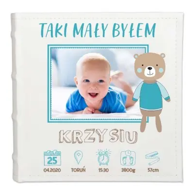 PERSONALIZOWANY ALBUM Z NADRUKIEM METRYCZKA ZE ZDJĘCIEM – to wyjątkowy prezent z okazji chrztu, roczku lub innej okoliczności.