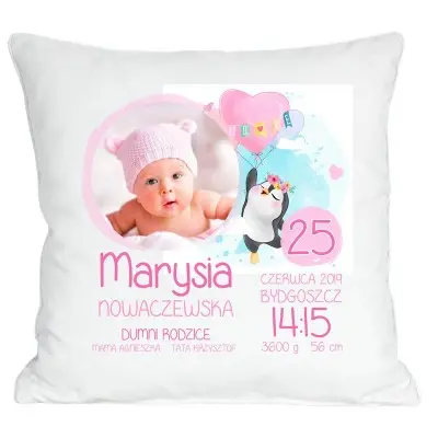 PODUSZKA ZE ZDJĘCIEM METRYCZKA CHRZEST URODZINY