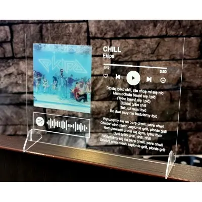 Spotify na szkle akrylowym ze zdjęciem i tekstem