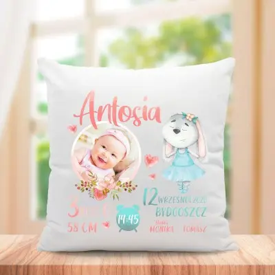 METRYCZKA NARODZIN W FORMIE FOTO PODUSZKI Z TWOIM ZDJĘCIEM –