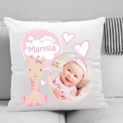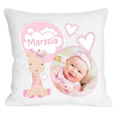 FOTO PODUSZKA Z TWOIM ZDJĘCIEM – to piękny prezent z okazji narodzin maluszka, roczku, urodzin,chrztu. Przepiękny element wyposażenia pokoju dziecka i wspaniała pamiątka.