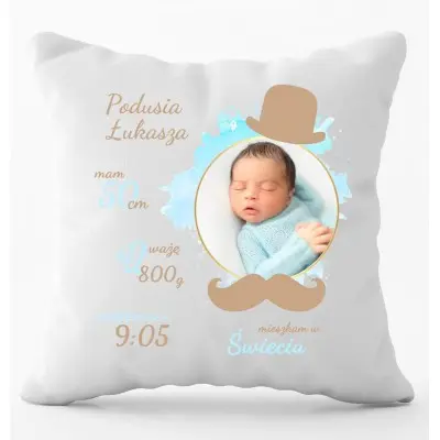 METRYCZKA NARODZIN W FORMIE FOTO PODUSZKI Z TWOIM ZDJĘCIEM – to piękny prezent z okazji narodzin maluszka, roczku, urodzin,chrztu. Przepiękny element wyposażenia pokoju dziecka i wspaniała pamiątka.
