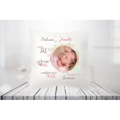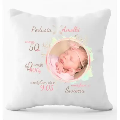 METRYCZKA NARODZIN W FORMIE FOTO PODUSZKI Z TWOIM ZDJĘCIEM – to piękny prezent z okazji narodzin maluszka, roczku, urodzin,chrztu. Przepiękny element wyposażenia pokoju dziecka i wspaniała pamiątka.