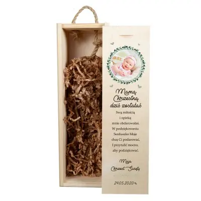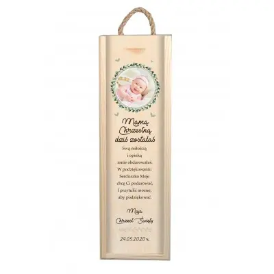 Podziękowanie w formie skrzynki na wino, alkohol ze zdjęciem Twojej pociechy z całą pewnością ich zachwyci, wywoła uśmiech na twarzy :).