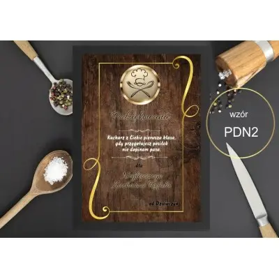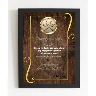 • Wydruk w formacie A4 (21×29,7 mm) – elegancka grafika z dedykacją, która oddaje szacunek dla pracy kucharza