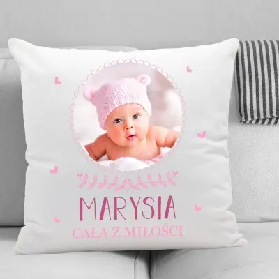 FOTO PODUSZKA Z TWOIM ZDJĘCIEM – to piękny prezent z okazji urodzin, roczku. Przepięknie będzie prezentować się w pokoju maluszka.