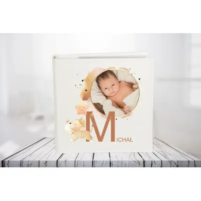 PERSONALIZOWANY ALBUM ZE ZDJĘCIEMto wyjątkowy prezent z okazji, roczku, urodzin. Pozwoli na przechowanie najcenniejszych wspomnień. Okładka zawiera zdjęcie maluszka, imię, ramkę oraz ozdobne grafiki.