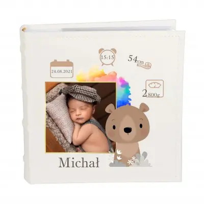 PERSONALIZOWANY ALBUMto wyjątkowy prezent z okazji, roczku, urodzin. Pozwoli na przechowanie najcenniejszych wspomnień. Okładka zawiera zdjęcie maluszka, imię oraz ozdobne grafiki.
