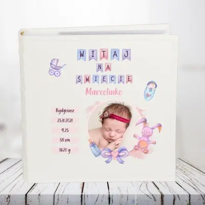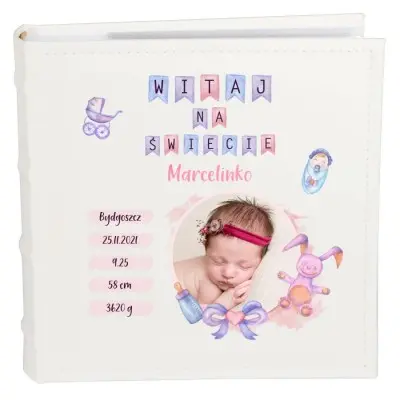 Album ze zdjęciem na urodziny, roczek, chrzest – metryczka