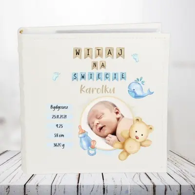 Album ze zdjęciem na urodziny, roczek, chrzest – metryczka